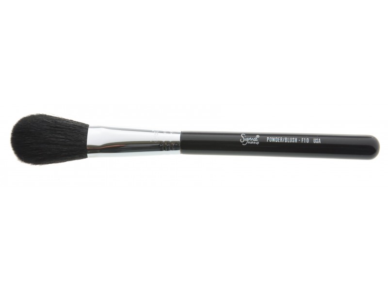 Pędzel do konturowania. Najbardziej uniwersalnym kształtem jest tak zwane „jajeczko” – nadaje się do nakładania bronzera jak i różu. Zatem jeśli nie chcemy wydawać dużo pieniędzy warto kupić właśnie taki rodzaj pędzla. Na rynku dostępne są także specjalne skośnoscięte pędzle do różu, które świetnie sprawdzą się również do nakładania rozświetlacza na kości policzkowe.