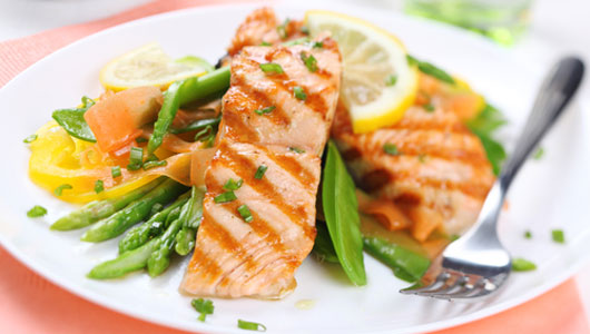 Chude mięso, drób i ryby nie powinny przekraczać 6 porcji dziennie. 1 porcja to na przykład 30 g mięsa drobiowego, ryb lub chudego mięsa czerwonego. Może to być również 1 jajko czy mała puszka konserwy z tuńczyka, jednak trzeba zwrócić uwagę, by nie zawierała ona soli. Z mięsa należy zdejmować skórę, trzeba je też piec lub gotować (na przykład na parze) zamiast smażyć na tłuszczu. Najbardziej polecane ryby to śledzie, tuńczyki i łososie, gdyż zawarte w nich kwasy tłuszczowe omega-3 obniżają poziom złego cholesterolu.